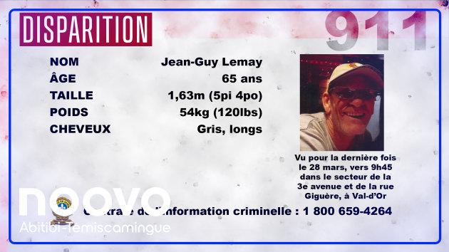 Val-d’Or : Disparition de Jean-Guy Lemay