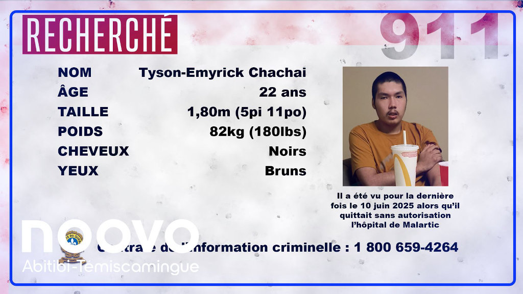Il s’agit de Tyson-Emyrick Chachai, 22 ans, de Lac-Simon.