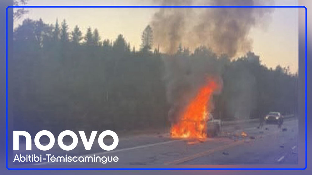 Selon la Sûreté du Québec, le conducteur de la moto aurait tenté un dépassement pour ensuite perdre le contrôle de l’engin et percuter la camionnette, qui a d’ailleurs pris feu.
